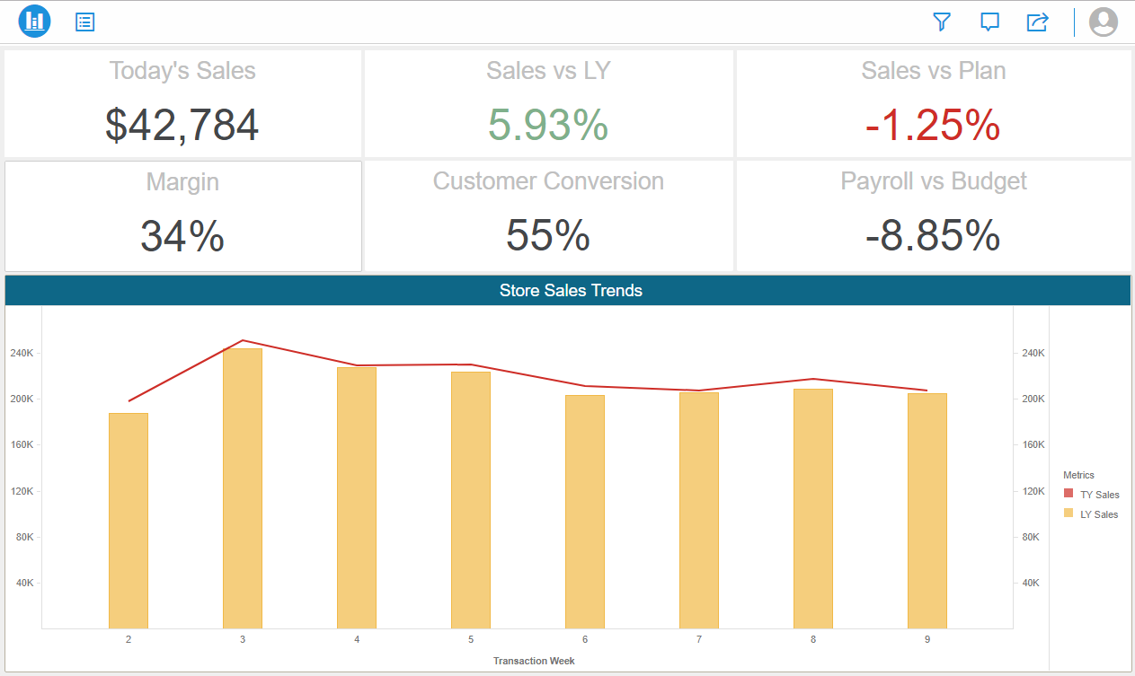 Uzņēmuma darbības indikatoru centralizēta uzraudzība - dažādu sistēmu dati vienā vadības panelī (dashboard).